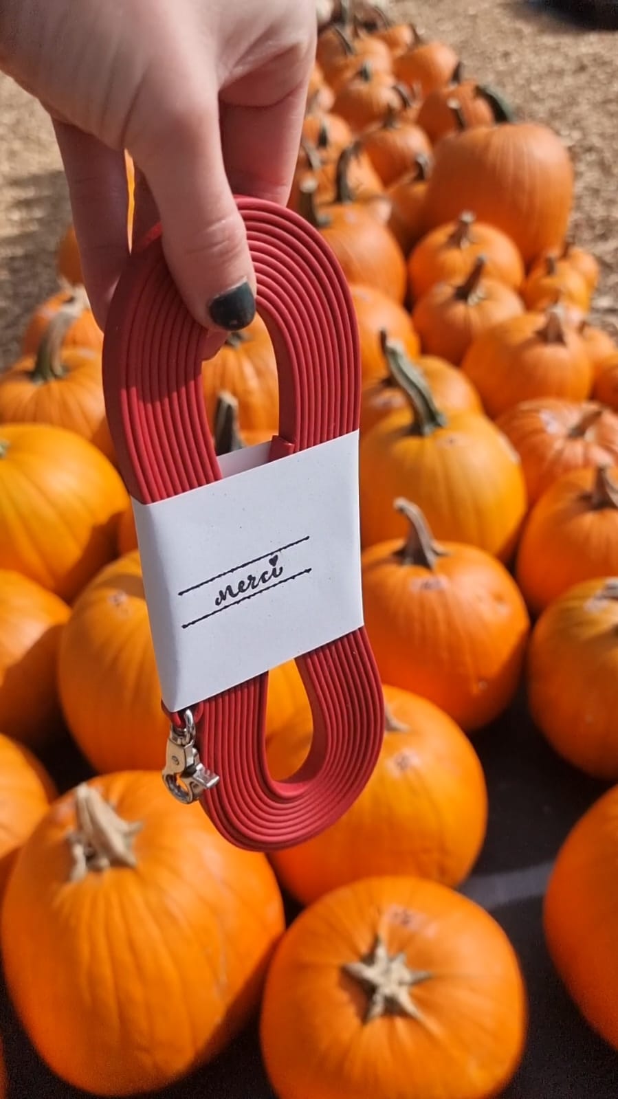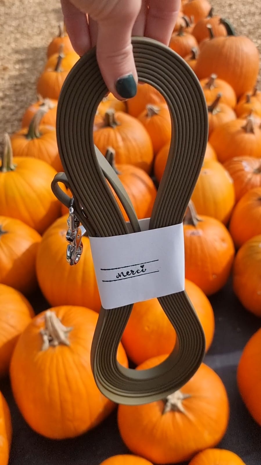 Amélie crée des longes en biothane solides, élégantes et colorées. Ses modèles hivernaux sont parfaits pour les fans de belles balades, même sous la neige ou sous la pluie.